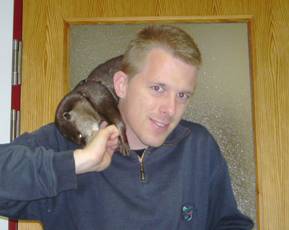 Ich mit Kurzkrallenotter "Nemo". Foto: Dr. Wolfgang W. Gettmann.