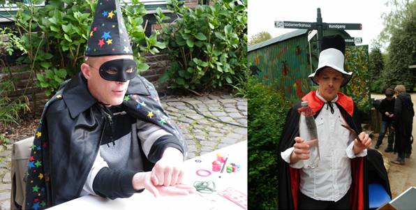 Ein bischen Spaß darf sein: Als Zauberer bei der Walburgis-Nacht 2009 und 2010 (r.) im Zoo. Foto: Tina B.
