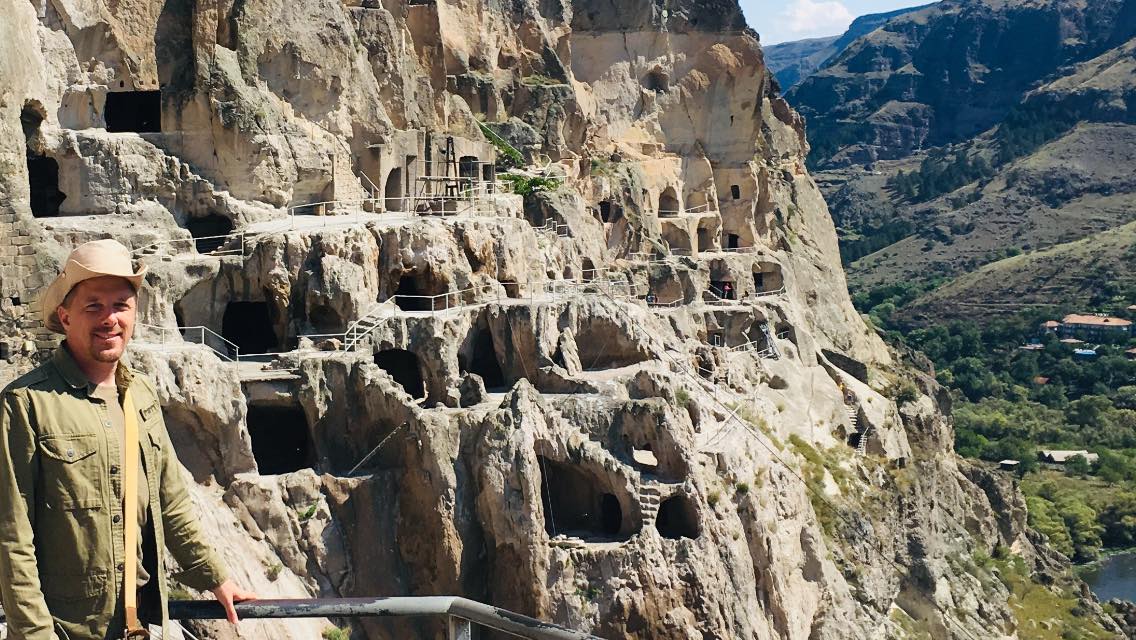 Ich in der Höhlenstadt Varzia in Georgien, Asien, 2013. Foto: G. Chincharauli.