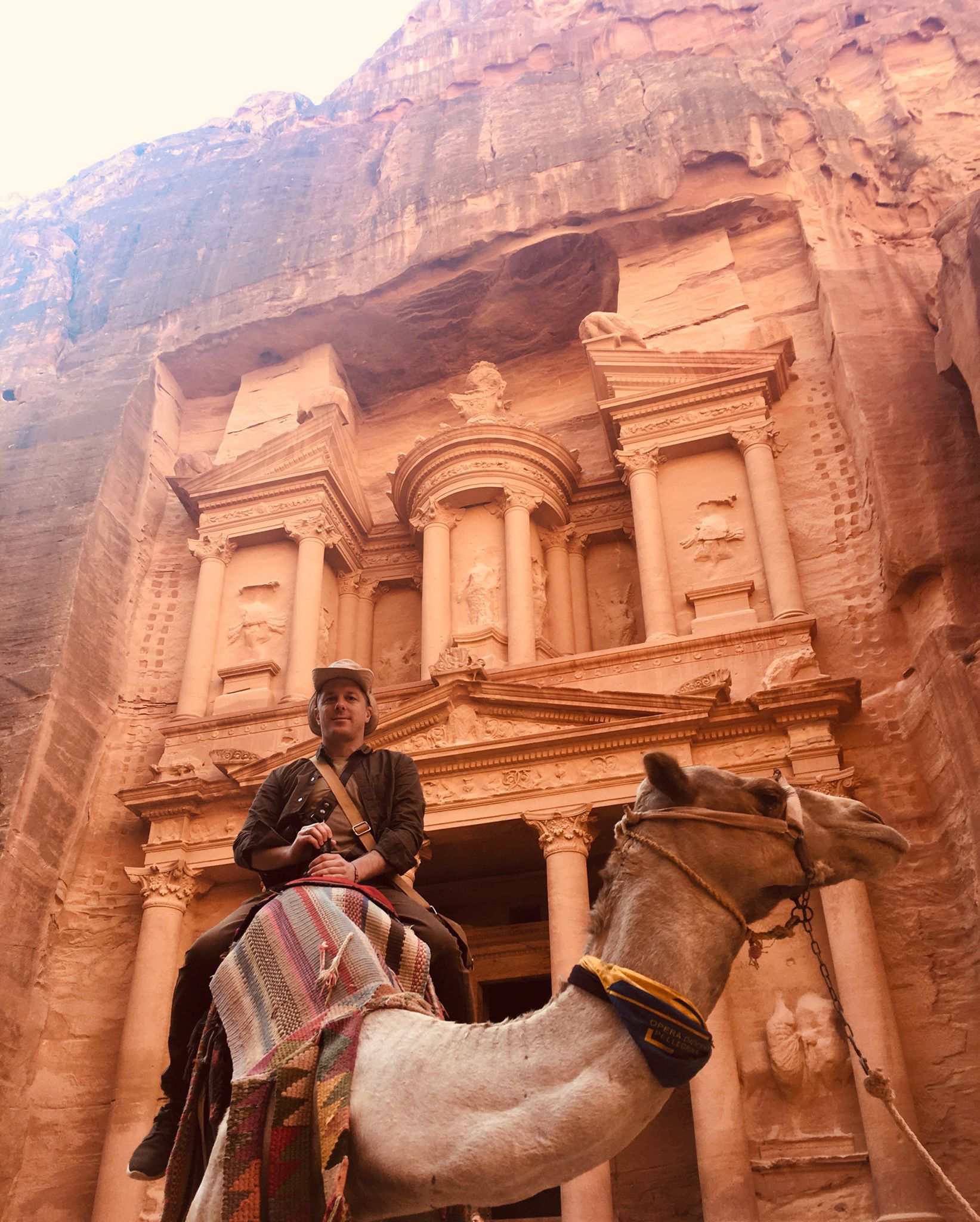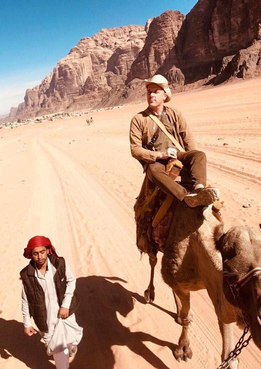 Auf einem Kamel in der weltberühmten Felsenstadt Petra, Jordanien (2019).