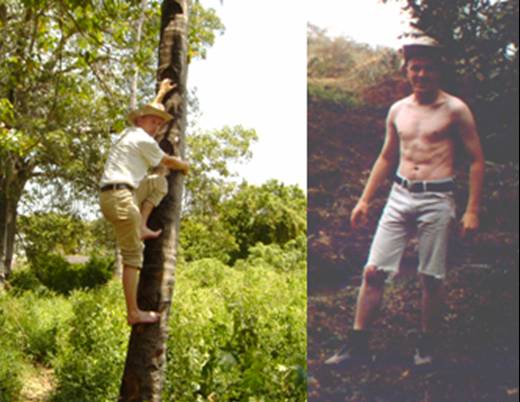 Ich klettere in Kenia auf eine Palme (links) und gehe auf "Walking-Safari" (rechts), 2005. Fotos: Tobias Dornbusch-Archiv.