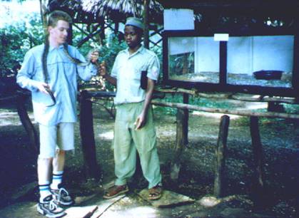 Ich mit Freund und Tierpfleger John Kitsao Karisa in der FOK, Kenia, 2000. Foto: Tobias Dornbusch-Archiv.
