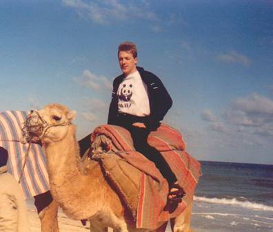 Hier reite ich in Tunesien auf einem Kamel (Dromedar), 2001. Foto: Tobias Dornbusch-Archiv.