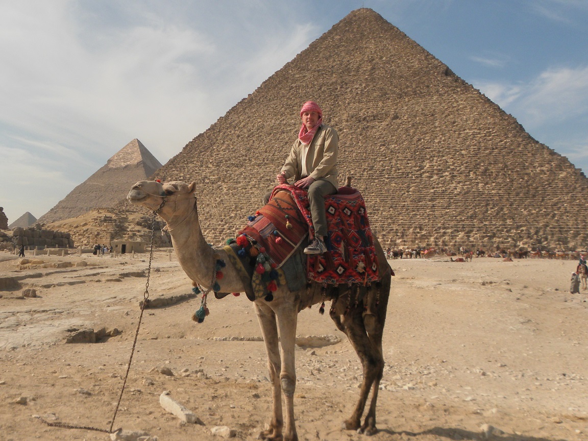Auf einem Kamel vor den Pyramiden von Giza, Ägypten (2015). Foto: T. Dornbusch-Archiv.