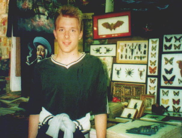 Der Patpong in Bangkok, Thailand, 2001: Ich stehe an einem Stand der bedrohte Tierarten verkauft: Fledermäuse, Spinnen, Skorpione, Käfer und Schmetterlinge. Foto: Tobias Dornbusch-Archiv.